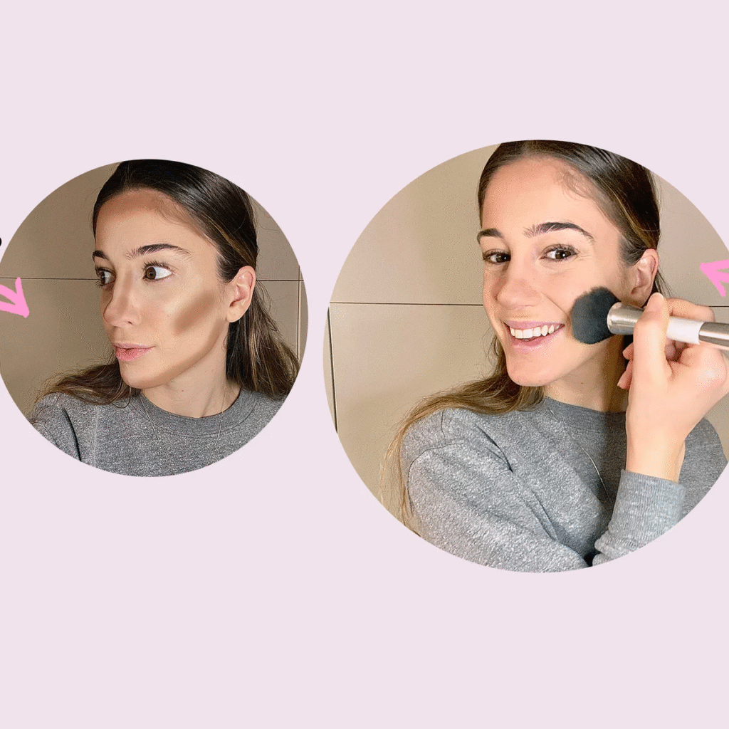 - Apply a light highlighter to the high points of your face, such as the upper cheekbones.